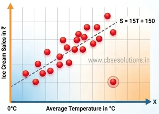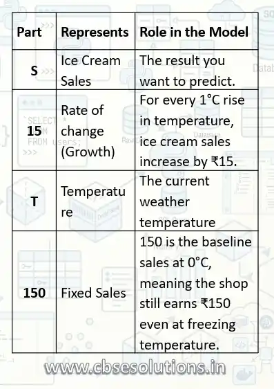 The equation S = 15T + 150 is the mathematical formula for the linear regression model shown in your graph. It describes the relationship between the temperature and ice cream sales.
