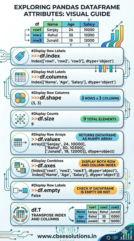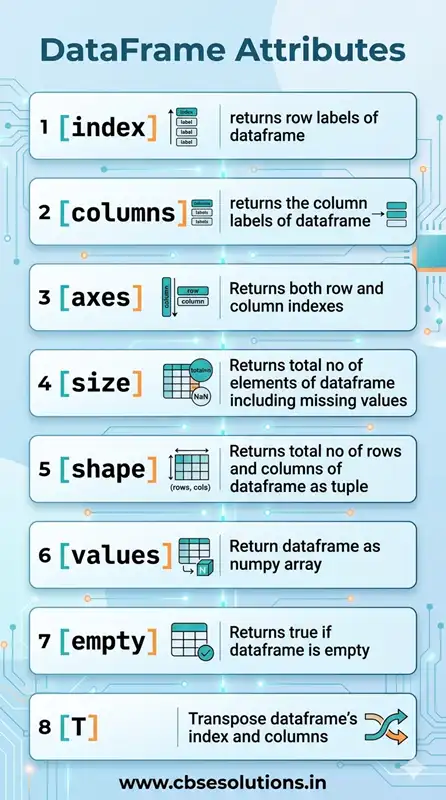 Attribute refers to properties of dataframe. Using dataframe attribute we can get all kind of information related to it. Following table list all dataframe attributes: