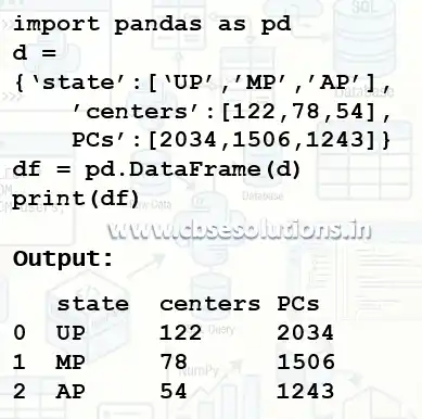 - Values of dictionary are taken as input data of dataframe