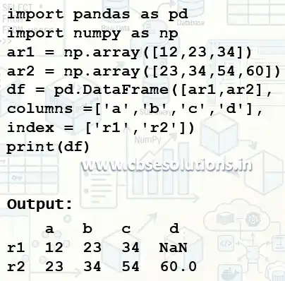 - Columns – Used to label index for columns. It is optional, and if not passed than numbers from 0 to n-1 is assigned to each column.