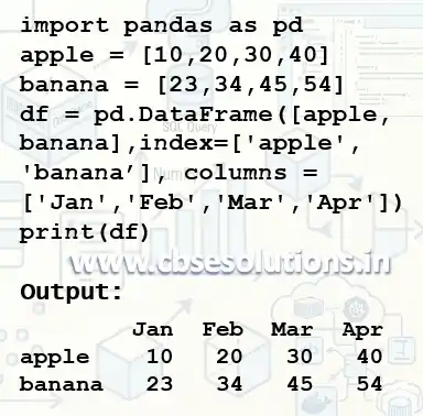 - Index – Used to label index for rows. It is optional, and if not passed than numbers from 0 to n-1 is assigned to rows