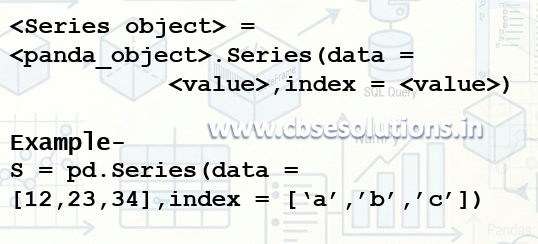 <Series object> = <panda_object>.Series(data = <nparray>, index = <sequence>)