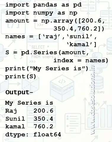 Example: Create a Series object that stores amount paid as values and name of customer as index. Amount paid is taken as nparray.