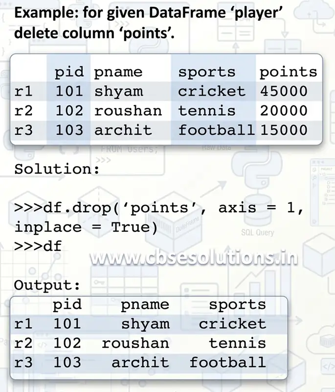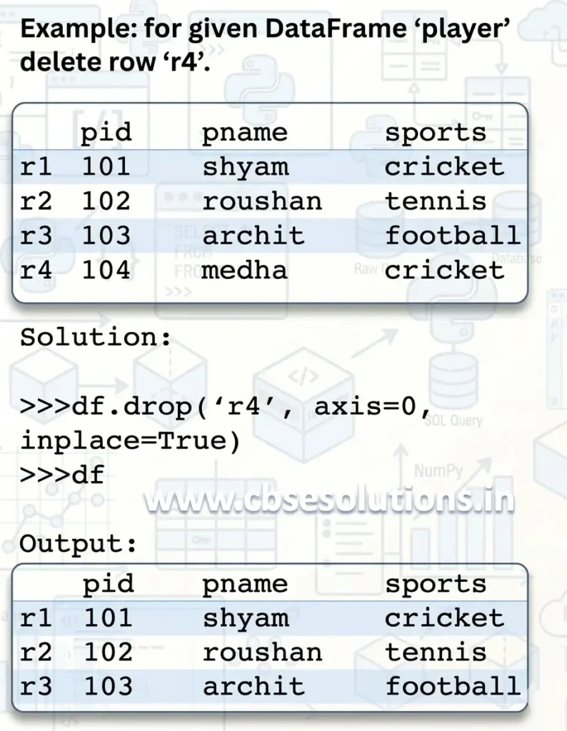- axis=0 → delete row, axis=1 → delete column