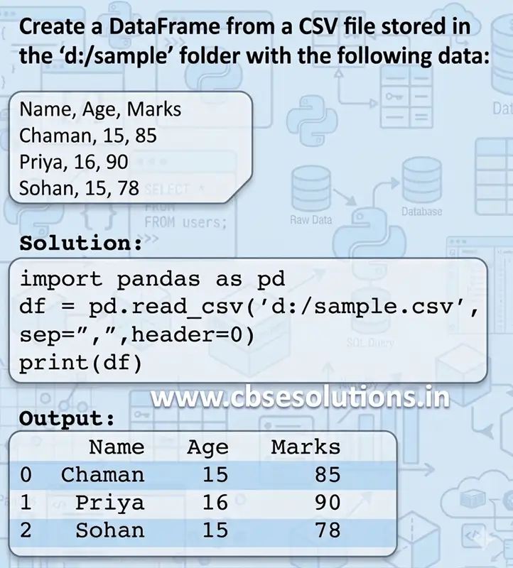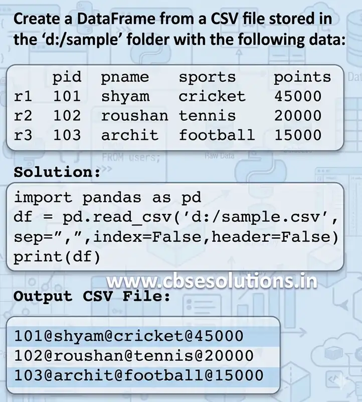 - Pandas provides two main methods to work with CSV files: