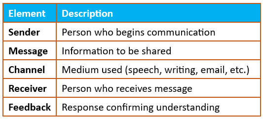 - Feedback: Receiver responds back their understanding to sender.