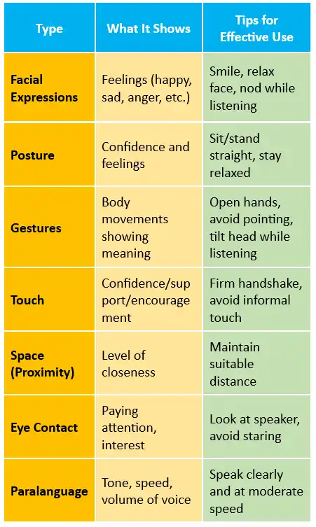 π Types of Non-Verbal Communication