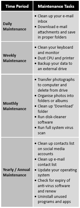 - Keep computer cool – Ensure cooling fan works; avoid blocking ventilation.