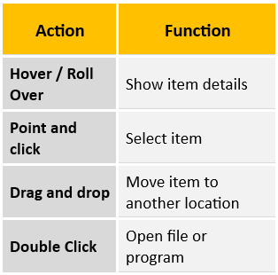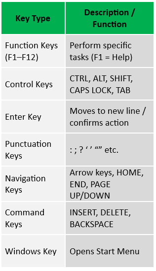 - Hardware – Physical parts we can see and touch (keyboard, CPU, monitor, mouse, etc.).